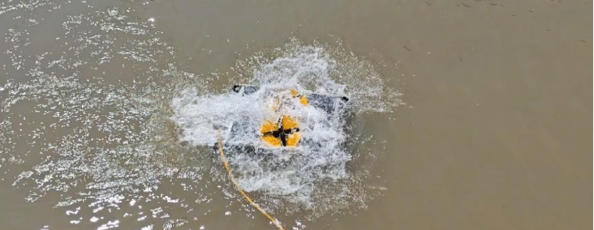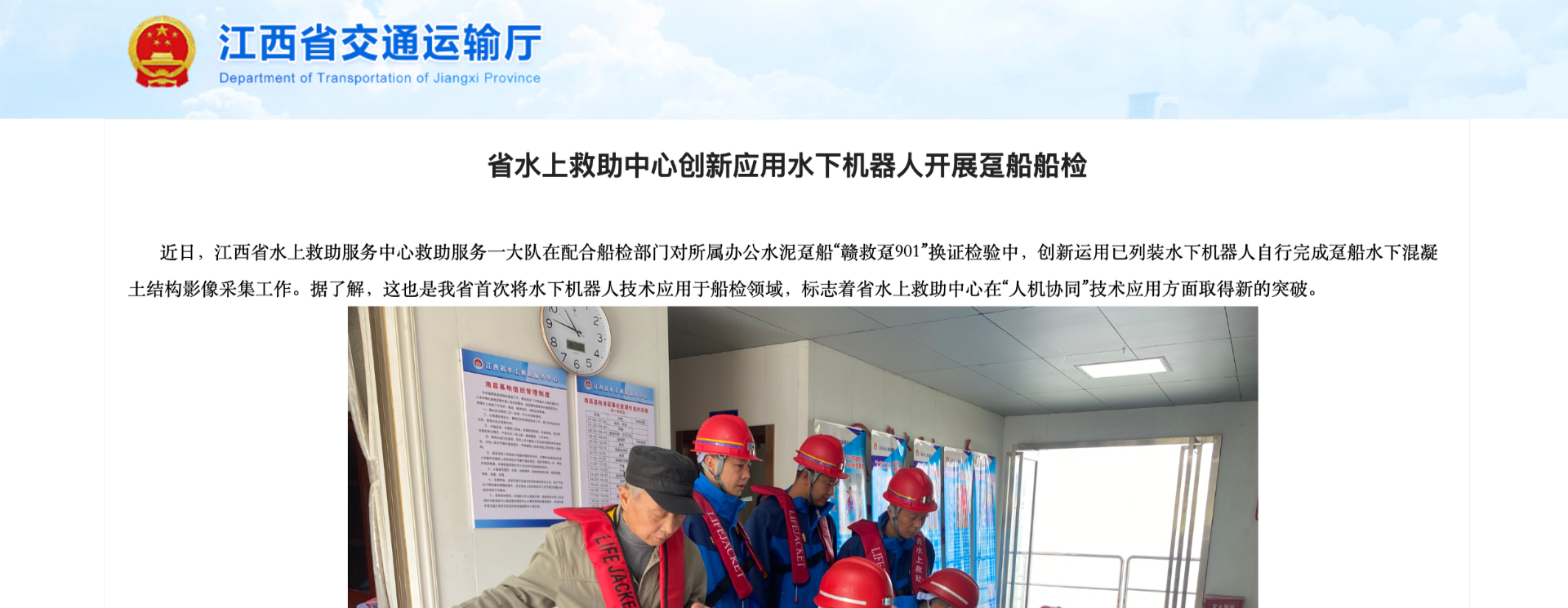 本产品在江西省水上救助中心为“赣救趸901”号进行首次水下机器人船检服务,解决了后坐力大、无法贴附作业的问题,首创了零后坐力双射流主辅复合机构。