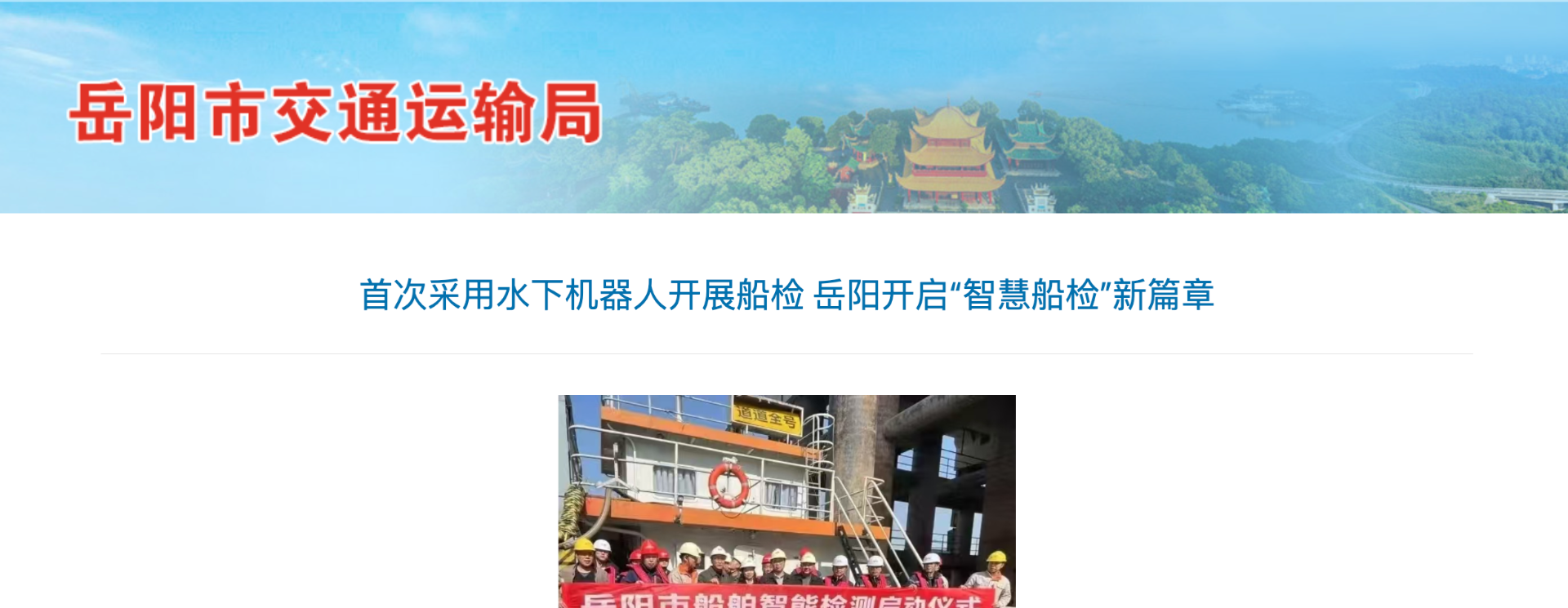 本产品在湖南省水运事务中心为岳阳港“道道全号”进行首次水下机器人船检服务,解决了船舶外形面复杂、检验不全面的问题,创造了船舶智能化检测技术运用的新高峰。